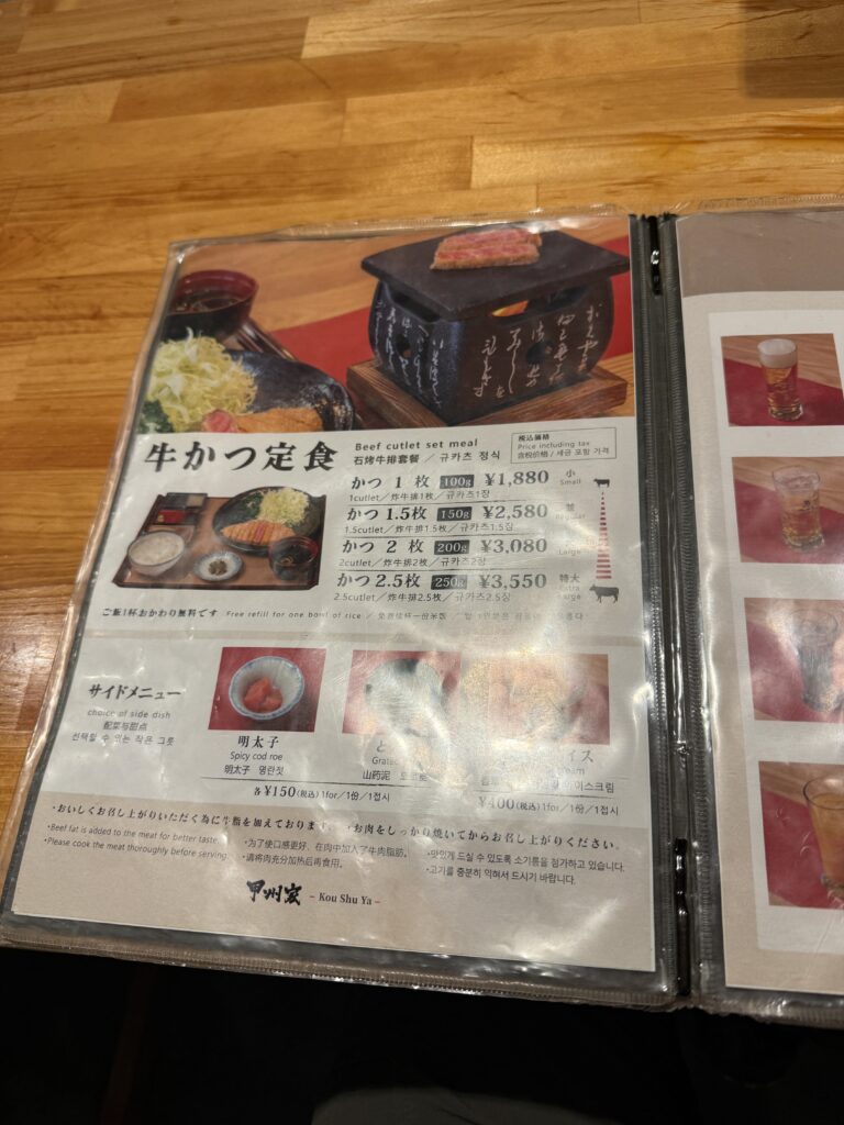 Ordered the biggest portion they had – premium beef cutlet set. Cost ¥3,550 (~SGD $35).