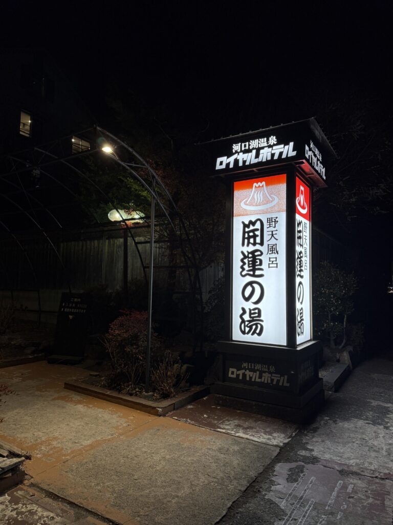 Indoor and outdoor baths. Multiple pools with different temperatures. The outdoor rotenburo (open-air bath) is the best – you can see Mount Fuji while soaking if weather is clear. At night you see stars above the steaming water.