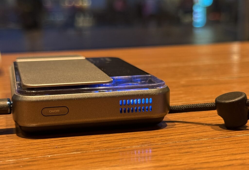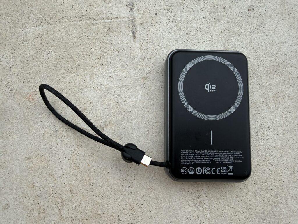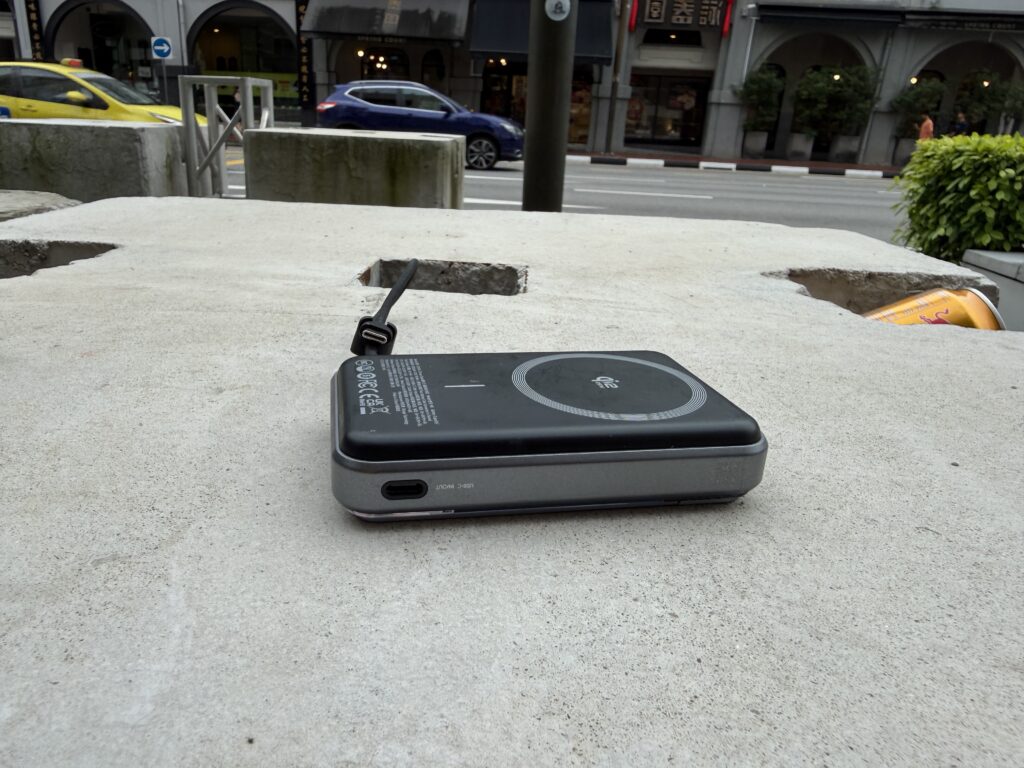 The 25W wireless is genuinely fast – almost matches wired charging speed. The built-in cable means I don’t need dig around for cables. Small enough to carry everyday without feeling it.
